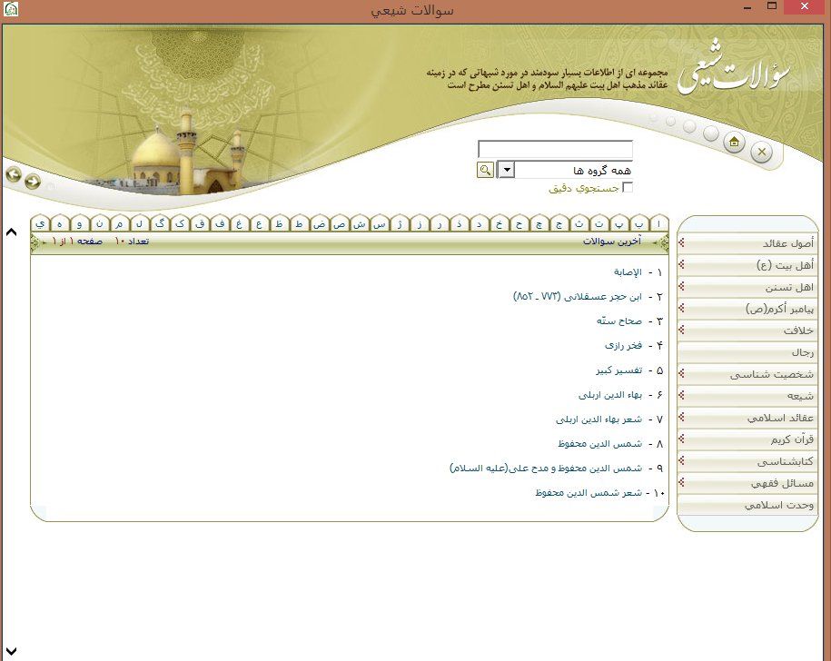 17000 حدیث از معصوم (نور) icon      قبله icon     نهج البلاغه صوتی کیمیا icon     پخش زنده حرم امام رضا (ع) icon